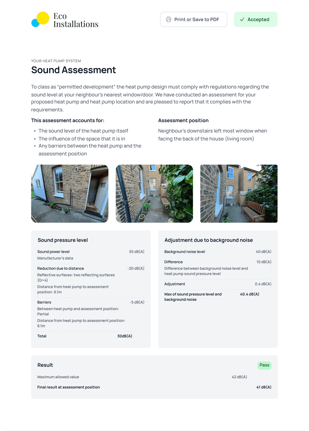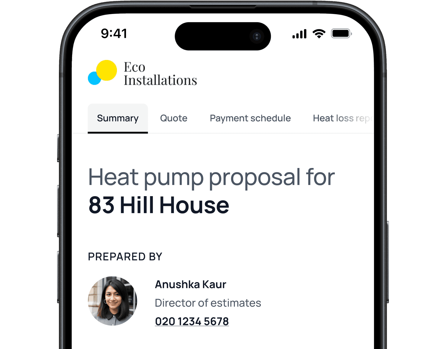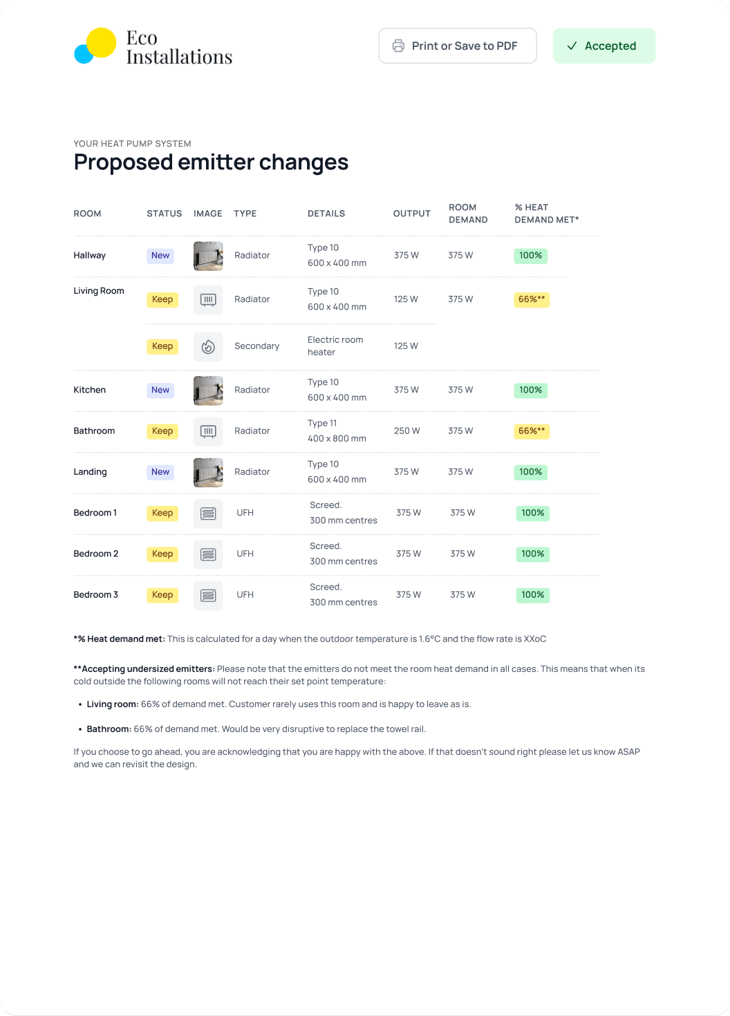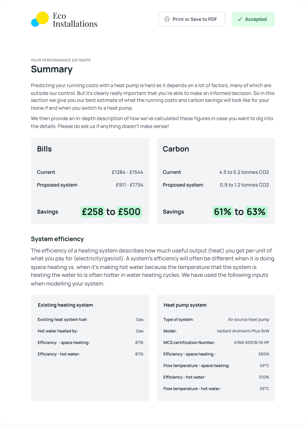 Present even the most complex of designs in an easy to understand way. Estimated savings, heat loss calculations, system specs - all clearly explained.